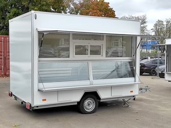 Торговый одноосный прицеп Купава 813211-32 одноосный, одна разрезная по длине ставня-полка, внешняя и внутренняя обшивка - металлопласт.