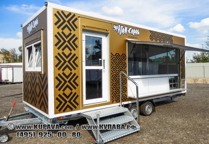 Àâòîïðèöåï Êóïàâà 813227 - ìîáèëüíàÿ êîôåéíÿ "Óðàãàí-Ñàðàé"Äâóõîñíûé òîðãîâûé ïðèöåï Êóïàâà äëÿ òîðãîâëè è ïåðåâîçêè òîâàðà, îäíà èëè äâå ñòàâíè, ìåáåëü èç ëàìèíèðîâàííîé äñï. Èñïîëüçóåòñÿ êàê ìàãàçèí èëè ìèíè-êàôå. - âíóòðåííÿÿ äëèíà 6ì, øèðèíà 2,4ì, âûñîòà 2,6ì - ÁÅÇ êîëåñíûõ íèø - âíóòðåííÿ è âíåøíÿÿ îáøèâêà - ïëàñòèê - ïîëíîñòüþ îöèíêîâàííîå øàññè ALKO (Ãåðìàíèÿ)