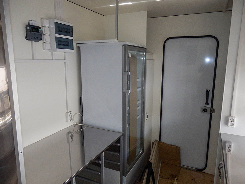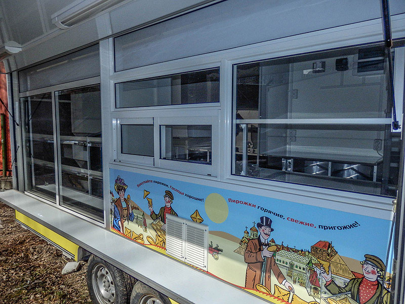в данной комплектации: - гардеробный шкаф с дверь - алюминиевая рама остекления СПЕЦ. ЛЮКС - блок розеток + внутреннее освещение - электропроводка 14кВт, 220В (дополнительные блоки розеток, раздельные автоматы под силовое оборудование, защита УЗО, трубостойка) - автономное водоснабжение - декоративные ПВХ юбки по периметру - декоративный фриз по периметру - электросчетчик 220В, 50-80А - экспозиционная витрина на 24 г/ё 1/2 , расстояние между рядами- 350-400мм , нижний ряд горизонтально, 2-й и 3-й ряды под наклоном, обшика нерж. сталью, розовая подсветка - шкаф-стойка под десять лотков 435х320мм (ламинированное ДСП, облицовка из нержавеющей стали, нержавеющие направляющие) - шкаф-стойка под шесть г/ё 1/2 (ламинированное ДСП, облицовка из нержавеющей стали, нержавеющие направляющие) - шкаф для инвентаря под столом. С 2-умя полками, с распашной дверью + полка над столом - обшивка нерж. сталью всех столешниц - декоративные ПВХ юбки и фриз по периметру - салат-бар охлаждаемый, 0…+7С (СКО-200, микропроцессорный блок управления с пассивной оттайкой, без колпака, без гастроемкостей) - рекламное оформление "33 пирожка" (ламинация - глянец) - холодильник "Бирюса" (стеклянная дверь) - ларь морозильный "Vestfrost IKG-405" (400л, -12…-24С, стеклянная раздвижная крышка, Дания) - Расстоечный шкаф АРГО 30: 10 уровней, 435*320, до 80 C, нерж.сталь, 1.4 кВт - Чебуречница (с краном для слива масла,660х470х280, VВАННЫ – 25л, VФРИТЮРА max - 13 л, 220В, 6кВт, 12.2кг)