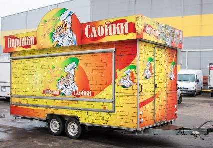 Автоприцеп торговый Купава 813290 кафе Торговый прицеп Купава 813290 - двуосный прицеп Купава для торговли и перевозки товара. Используется как магазин или мини-кафе.