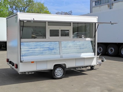 В возможную комплектацию входит система автономного водоснабжения, алюминиевое раздвижное остекление, электрощиток, бортовой ввод, гардеробный шкафчик, бортовой ввод или трубостойка, термоизоляция, одна или две экспозиционные витрины на 300 и 200л, выдвижная холодильная витрина 450л с гнутым стеклом и розовой подсветкой, холодильный шкаф 610л, подвес для колбас с розовой подсветкой, щиток со счетчиком
