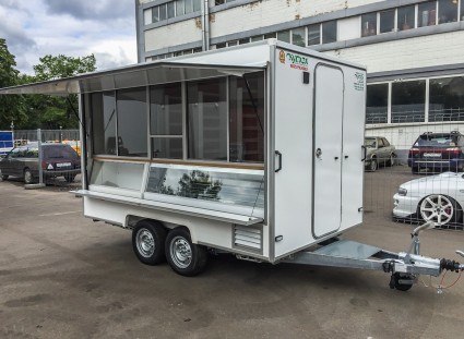 Возможна комплектация одной холодильной и(или) морозильной витриной объемом 350 л (длина 1,94м, как на фото), одной холодильной или морозильной витриной на 570л (длина 3,1 м , на всю длину ставни),одной или двумя холодильными или морозильными витринами по 270л ( длина 1,5м), холодильными шкафами 610л, 1000л или 1250л, холодильными и (или) морозильными ларями от 280л до 600л и другим оборудованием.
