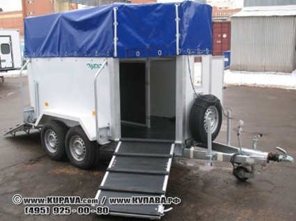 Двухосный прицеп «Купава» 813253-0002 для перевозки крупного рогатого скота не менее 2 голов, молодняка крупного рогатого скота 5-6 голов, свиней, овец, коз с живой массой до 1700 кг. Для входа и выхода предусмотрены два откидных трап-борта в задней и передней части прицепа. Крыша выполнена из стальной трубы со съемным ПВХ-тентом. Простота прицепа позволила уйти от дорогостоящих элементов в конструкции.