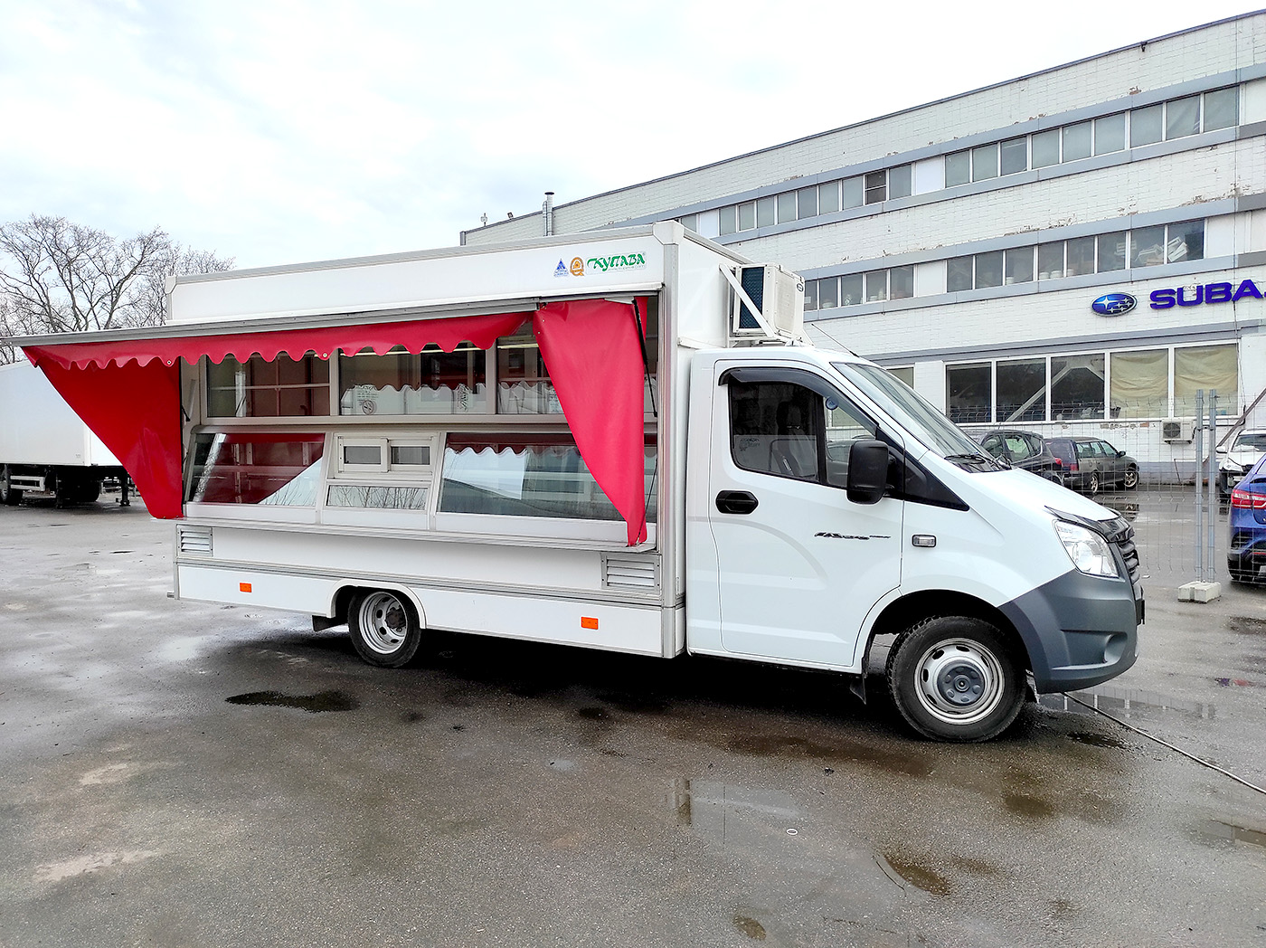 кузов «Купава» мод. КТ 4322 пластик с внешней и внутренней стороны кузова (для шасси ГАЗель NEXT внутр.4,2*2,2*2,0м; одна разрезная по длине ставня-полка; в исполнении с фальшбортами)